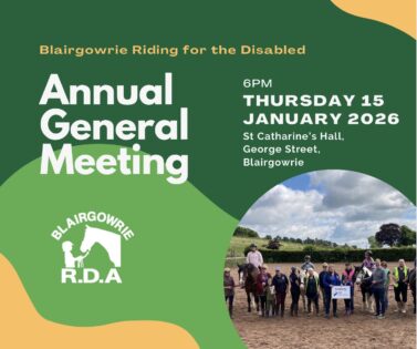 Blairgowrie Riding for the Disabled is holding its Annual General Meeting at 6pm on Thursday 15 January 2026 in St Catharine’s Hall, George Street, Blairgowrie. All welcome!